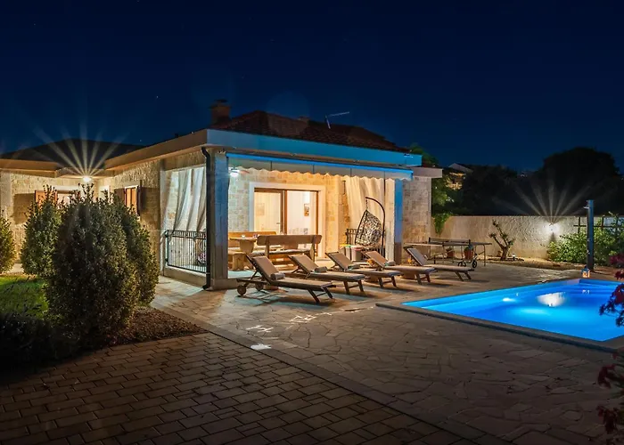 A microwave oven, a fridge, and kitchenware, as well as other self-catering facilities, like tea and coffee making equipment are provided at a full kitchen. Guests can reach the villa by car from Zadar airport in 37 minutes. Guests can relax in a Jacuzzi and a sauna, or enjoy table tennis in the area.